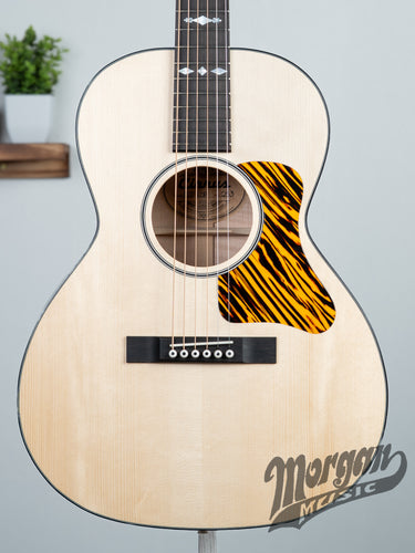 The Cirrus C00-L is a faithful rendition of the 1930s slope-shouldered, small-bodied guitars that were hugely popular with blues and folk players who went on to write music history. The C00-L has a celluloid fire stripe pickguard, 3-on-plate tuners and cream-colored bindings, purflings, and rosette. The Adirondack Spruce soundboard bracing has been adjusted and lightly scalloped to add a bit of warmth while retaining the “bluesy” tone of the original.