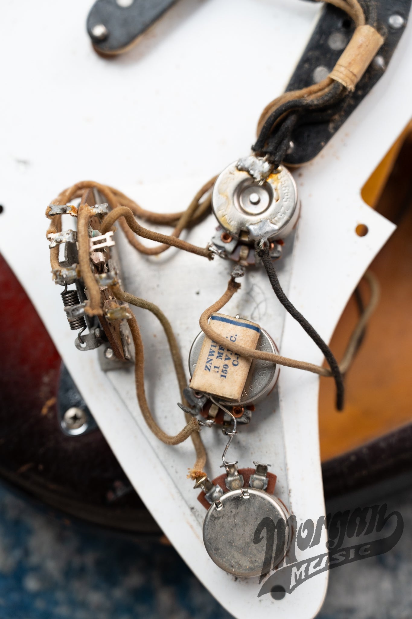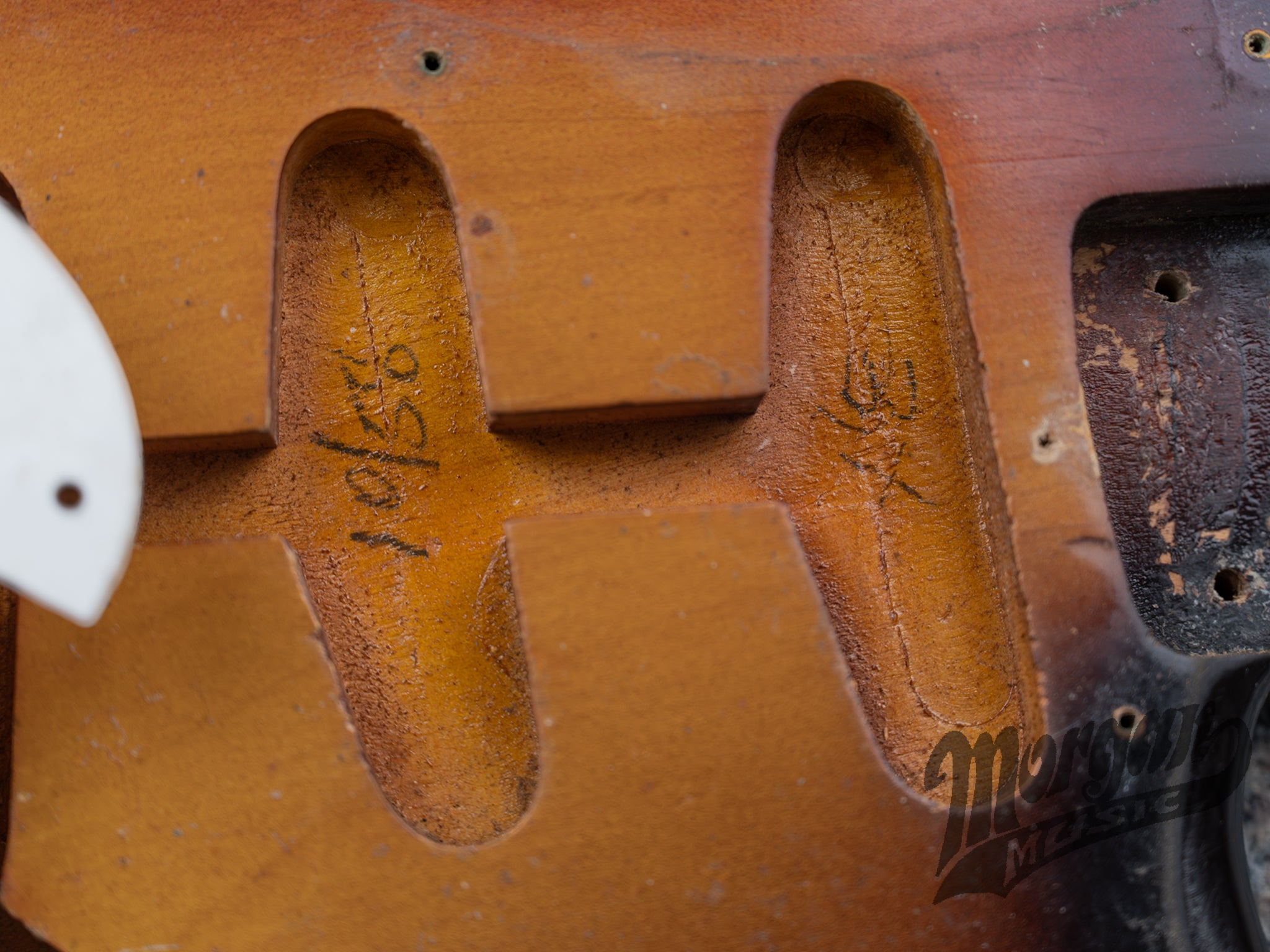 As far as we can tell, everything is original to this guitar. This lines up with the information we have gathered from the daughter of the original owner. It comes with the original hard shell case, strap, bridge cover, hang tag, and documentation from Fender. This is all pictured below. The neck is dated November of 1958 and the body is dated October of 1958. The serial number will line up with the 1959 serial numbers.