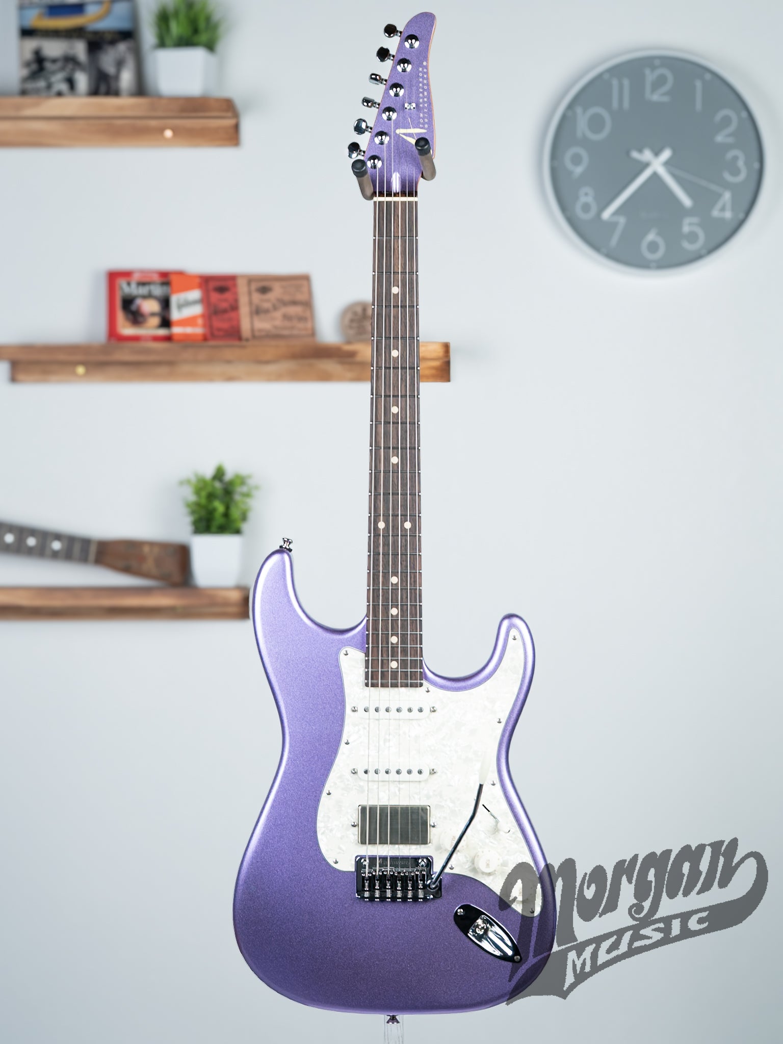 This Anderson sports the Metallic Ice Purple Finish! The playability and tone of this guitar might set it apart more then the glorious finish! It comes with Andersons gig bag for maximum protection.