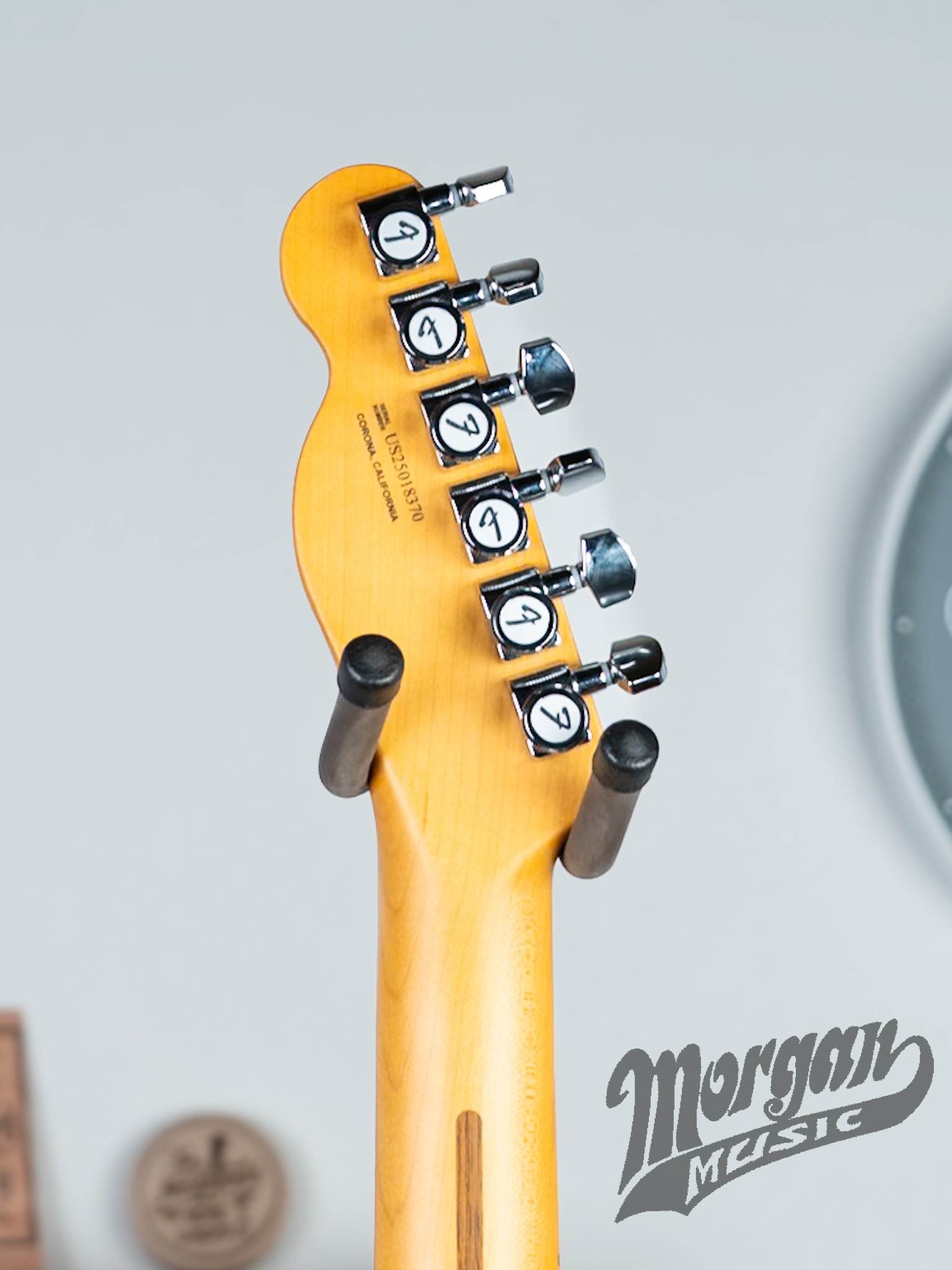 The American Ultra II Telecaster redefines classic Fender design with purposeful ergonomics. Its alder body features strategic contouring—upper waist shaping, subtle cutaway relief, and lower bout sculpting—that reduces fatigue and enhances playability without sacrificing the iconic Telecaster aesthetic. The Modern D neck profile paired with a sculpted heel accelerates fretboard access and improves overall control. The result is a refined instrument that balances traditional character with contemporary comfort, ideal for players seeking both familiarity and performance innovation. This Tele is in superb condition! The eight comes in at 7.10lbs.